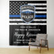Delgado Tapiz de Jubilación de la Línea Azul - Diseño de la bandera norteamericana en colores de la bandera de la policía, diseño moderno. Este tapiz personalizado de la policía es perfecto para celebrar a su agente retirado, regalos de fiestas de retiro de la policía, fiesta de retiro de la policía. Personaliza este cartel de retiro de la policía con rango de oficiales de policía, nombre, nombre del departamento y logo o emblema y fecha de retiro, y mensaje personal. Perfecto para todos los fiestas de retiro de oficiales de policía y regalos de retiro de fuerzas de la ley . DERECHOS RESERVADOS © 2020 Judy Burrows, Black Dog Art - Todos los derechos reservados. Personalizado de bandera delgada de la línea azul logotipo Tapiz de jubilación de la policía