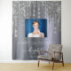 Un tapiz para una fiesta de cumpleaños glamurosa y femenina de 21 años (o de cualquier edad). Un fondo falso plateado con elegantes goteos en purpurina plateado falso, pinturas de goteo. Personalice y agregue su propia foto de alta calidad del chica de cumpleaños. El texto: El nombre está escrito en blanco con una escritura de estilo moderno con letras a mano con groserías. Para que los cambios sólo eliminen el nombre del ejemplo, deje los espacios o la emoji delante y después del nombre. Tempates por un nombre, edad 21 y fecha. Se puede utilizar como decoración de pared para el fiesta o como telón de fondo de una cabina de fotos.