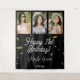 Personalizado Photo Booth o el fondo de pared Fiesta como decoración de pared de fiesta de cumpleaños! Espacio para 3 fotos del chica de cumpleaños, y personalizar fácilmente el diseño moderno de tipografía con tu nombre, mensaje y fecha de cumpleaños. Este diseño presenta detalles de confeti dorado impreso que brillan sobre un fondo negro.