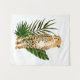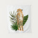 Cheetah Outlook I de Annie Warren. Un guepardo de color acuático con hojas verdes tropicales al fondo. | 164730Z