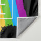 Esta obra de arte presenta un arcoiris colorido con la palabra Orgullo.
