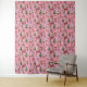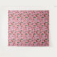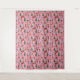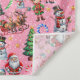 Christmas-themed pattern featuring Santa Claus, reindeer, snowmen, elves, Christmas trees, candy canes, and snowflakes on a pink background