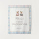 A large backdrop featuring a classic pink and blue teddy bear design. Perfect for photos, dessert tables, or gift tables at a gender reveal baby shower.