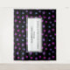 Sencillamente elegante salón de mascotas profesional en blanco y negro, decorado con tapiz de fondo con huellas de pata morado, rosa y azul. Un fondo negro de coordinación está en la parte posterior de la tarjeta. Perfecto para salones de mascota y mascotas.