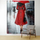 Tapiz pintura de una mujer caminando bajo la lluvia