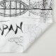 Agradable tapiz negro, blanco y rosa con pintura en línea del templo japonés, montaña y flor de Sakura reflejando en el lago. Este es un regalo ideal para los amantes de la naturaleza. Una hermosa decoración de pared para tu casa y oficina.