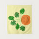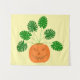 Este impresionante tapiz presenta una imagen de arte digital de una serie de hojas de una planta doméstica llamada Monstera, también conocida como la planta suiza de queso. Las hojas son de color verde oscuro y están cubiertas de lóbulos y algunas tienen agujeros. La planta está contenida dentro de una calabaza de Halloween que da miedo con una sonrisa malvada, dientes afilados y ojos malvados.