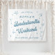 Bienvenidos a su tribu de novias a un fin de semana de diversión con este personalizable polvoriento tapiz azul de la soltera. Con un diseño elegante con un nombre personalizado, una ubicación y una fecha, este llamativo colgante de pared le dará el tono de celebración perfecto para su fin de semana de soltera. Con sus colores de moda y detalles divertidos como gafas de martini y conchas marinas, este tapiz añade un toque de glamour y emoción a cualquier espacio fiesta. Cree una memoria duradera con este mantenimiento único y personalizado.