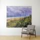 Este tapiz de pared presenta una fotografía original de ZoeSPEAK, de la playa de Júpiter en un día tormentoso. La tierra y el mar son vistas a lo largo de la arena y el océano desde las altas dunas cubiertas de uvas marinas. El cielo gris azul lavanda está lleno de amenazantes pero hermosas nubes oscuras. A lo lejos, un espigón se extiende hasta el agua.
