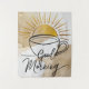 Buenos días, este diseño presenta un hermoso sol dorado y rayos solares con una taza de café y texto que dice "Buenos días".