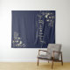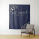 Retrocede en el tiempo con nuestro telón de fondo para fotos de boda con temática vintage 'Recién casados', con un rico tono azul marino. Adornado con encaje floral dorado intrincado y delicada caligrafía, crea un entorno encantador para capturar recuerdos atemporales de tu día especial, combinando elegancia y nostalgia sin esfuerzo.