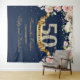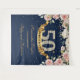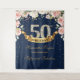 Precioso boho navidad y rosa pastel floral tapiz de fondo para cumpleaños número 50, con rosas suaves florales y arreglo de vegetación fresca en fondo azul marino y destellos de purpurina dorada. Contactame para otra EDAD o para personalizar. Rosas Rosadas