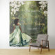 Personaliza esta encantadora bienvenida de cumpleaños Sweet 16 / tapiz de fondo fácilmente y rápidamente. Simplemente haz clic en el botón Editar con herramientas de diseño para editar aún más el texto, cambiar los estilos de fuente y los colores de fuente. Cuenta con una niña negra vestida con un vestido verde salvia, un príncipe rana, hermosas flores blancas colgantes y un fondo de bosque y estanque encantado. La niña, la corona, las pequeñas mariposas y la rana son móviles, redimensionables, multiplicables y removibles. Personalízalo según tu ocasión. Para una apariencia perfecta y coordinada, explora nuestra gama de artículos coincidentes disponibles en la tienda. (c) Somerset Fine Paperie.