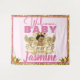 Fondo de Foto Princesa Real Africana Rosa|Brillo Dorado cuenta con una adorable princesa étnica que lleva una corona de oro; rodeada de un fondo dorado brillante y marco rosa con texto rosa. Perfecto para una ducha de bebé de Princesa Real o Anuncio de Nacimiento de Princesa Real 2021 Miss Sassy Party Designs