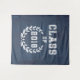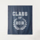 Diseño de texto de la promoción de 2018 con decoración de corona de laurel para graduación. Es posible cambiar el color de fondo y agregar uno diferente al diseño según su elección.