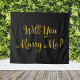 Cartel de propuesta de matrimonio negro y dorado. ¿Te casarás conmigo? Pancarta para pedirle matrimonio a tu novio o novia.