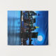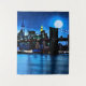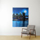 Tapiz en un impresionista, pintura digital del puente de Brooklyn, y la ciudad más allá, bajo una luna llena, con luz de la luna reflejada en el agua