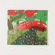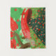 Un tapiz de bonito con un puente de estilo japonés. Las hojas de arce que caen le dan un toque elegante.
