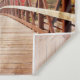 Tapiz con una fotografía panorámica. Un puente de madera que conduce a un camino rodeado de árboles que cambian de color.