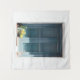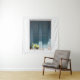TAPIZ PUERTA DE MADERA AZUL EN MURO DE CONCRETO BLANCO