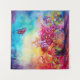 Pintura caprichosa, colorida y vibrante acuarela en rojo brillante, rosa, fucsia, amarillo, azul, verde, colores púrpura. 2009. Ilustración para un cuento de Andersen. Un niño pequeño y diminuto que nació en una flor, que dormía en una cáscara de nuez, que navegaba en una hoja de tulipán...