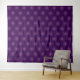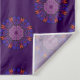 Diseño geométrico en tonos violetas y rojos con elementos de vidrio manchado.