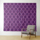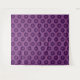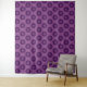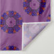 Diseño geométrico en tonos violetas y rojos con elementos de vidrio manchado.