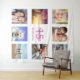 Para una Quinceañera, cumpleaños número 15, celebrando su vida con un collage de 8 de tus fotos de sus amigos, familiares, intereses o mascotas. Personaliza y agrega su nombre, edad 15 y una fecha. Fecha de nacimiento o fecha de la fiesta de cumpleaños. Letras de color rosa y púrpura. Un fondo blanco chic. Utilizar como decoración de pared de fiesta, pancarta de bienvenida y como cabina de fotos, fondo de fotos.