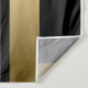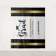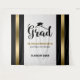 Rayas geométricas modernas negras y doradas sobre fondo blanco y gorra de graduado negra