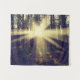 Esta foto ofrece un bosque del árbol de pino que estalla con los rayos de sol.