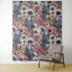 Patrón vectorial dibujado a mano con varias flores, hojas y aves grises