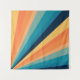 Ilustracion de patrón geométrico de rayos solares de estilo retro con decoración de rayas amarillas, naranjas, azules y turquesas