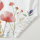 Tapiz con escritura de cita inspiradora representa un diseño de acuarela floral de flor silvestre con cachorros rojos simples y vegetación. Presenta una cita cristiana motivadora, "Reza más preocupación menos", tomada de Biblia Verses filipinos 4:6-7.