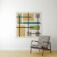 Este diseño moderno inspirado en la era atómica, de mediados de siglo, tiene líneas audaces y formas geométricas para seducir a todo aquel que ame el arte abstracto de los años 50. Los colores son naranja dorado, verde, azul turquesa, gris.