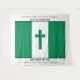 Recuerdo patriótico TAPIZ DE LA BANDERA DE NIGERIA con Cruz y Versículo Bíblico. El diseño muestra la bandera de NIGERIA con una cruz verde con sombra paralela en el centro. Un borde negro delgado rodea la bandera. En los lados largos hay un nombre y un versículo bíblico que son PERSONALIZABLES, para que puedas reemplazarlos con el nombre de tu iglesia u organización, o cualquier otro texto de tu elección. Si unes pesos en las esquinas (no incluidos), el tapiz de tamaño extra grande también podría usarse como PAÑO FUNERARIO o CUBIERTA DE ATAÚD en un funeral, y conservarse como recuerdo después. Otras banderas y versiones disponibles.