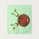 Este impresionante tapiz presenta a un gracioso personalizado de un reno. Tiene ojos negros y una enorme nariz brillante roja brillante y brillante. Las cuerdas apuntan y parecen futuristas haciendo de este reno un reno cibernético. Sin embargo, sigue siendo lindo y amigable.