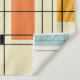 Un patrón abstracto moderno de medio siglo con líneas negras y formas cuadradas y rectangulares coloridas en verde azulado, naranja y oro.