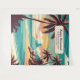 Retirement party theme with tropical beach in retro colours.