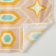 Retro geometric pattern with hexagons and stars in blue, orange, and yellow on a light pink background. The design feels vibrant and nostalgic.