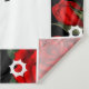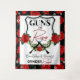Tela de fondo para ducha de revelación de género de armas o rosas. Rojo negro y blanco. Rosas rojas en la parte superior del marco en forma de insignia con agujeros de bala alrededor del marco de rosa exterior. Ideal para parejas militares o de fuerzas del orden. 2022 Miss SassyParty Designs