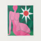 "Reverie Rosa" es una obra de arte minimalista que presenta una figura rosa abstracta con un fondo verde atrevido, iluminado por un sol blanco sereno. Esta impactante pieza mezcla elegancia y simplicidad, perfecta para espacios modernos.