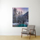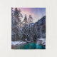 Fotografía paisajística de una hermosa puesta de sol con un río turquesa y un bosque nevado. Una escena verdaderamente mágica después de un paseo a la cascada Peričnik y de vuelta.