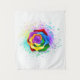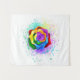 Rosa grande y floreciente con pétalos de arco iris sobre fondo blanco, pintado con salpicaduras de pintura colorida y brillante. 3.ª