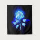 Rosa abstracto en flama azul sobre fondo negro. Rosa de incendios.