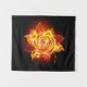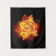 Rosa en llamas del fuego y la llama sobre fondo negro.