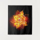 Rosa en llamas del fuego y la llama sobre fondo negro.