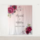 Para una boda romántica de primavera o verano. Decorado con flores de color púrpura oscuro, burdeos y rosa. Plantillas para sus nombres y la fecha de la boda. Fondo degradado de oro rosa y blanco. El texto: La boda de está escrito con un estilo de letra manuscrita moderna, letras negras.