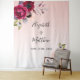 Para una boda romántica de primavera o verano. Decorado con flores de color púrpura oscuro, borgoña y rosa. Plantillas para sus nombres y la fecha de la boda. Fondo degradado de oro rosa y blanco. El texto: La boda de está escrito con un estilo de letra manuscrita moderna, letras negras.