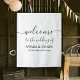 Una hermosa forma de dar la bienvenida a sus huéspedes a uno de los días más importantes de su vida. Un fondo minimalista de tapiz de signos de boda de bienvenida con texto de script de firma personalizado. ¡Personalízala para adecuarla a tu gusto!