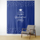 Este moderno tapiz es perfecto para una fiesta de graduación de temática de color azul y blanco real de la moda. Un telón de fondo fotográfico perfecto para recordar su día especial. El diseño presenta una tipografía dorada " Partido de Graduación " y una tapa de graduación con fondo de confeti. En mi tienda BaraBomDesign hay más decoración y artículos para fiestas de graduación.